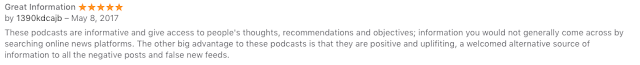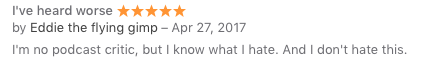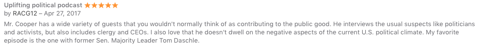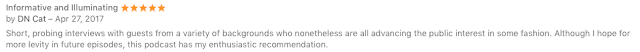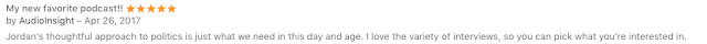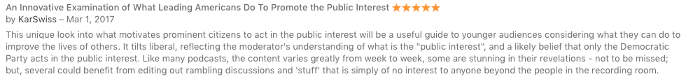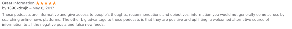 [Your episode] was excellent. Your best interviewee, and you were at your best too. Your introduction was outstanding in presentation and substance. The microphone technical sounds were spot on.