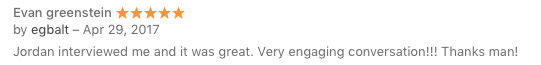 I'd like to compliment you. You're a good listener; you recited back to me the talking points that I made and that's a pretty rare quality, so I salute you. You're really good with your work. One of your strengths (and a very important part of being a good interviewer) is being a good listener. I'm really impressed and I feel like I'm in good hands talking to you. The questions you asked were very good questions and they prompted me to just want to talk for hours... I am very impressed with your ability to absorb and listen to some complex ideas and take them to a more articulated level. It has been a pleasure talking to you."